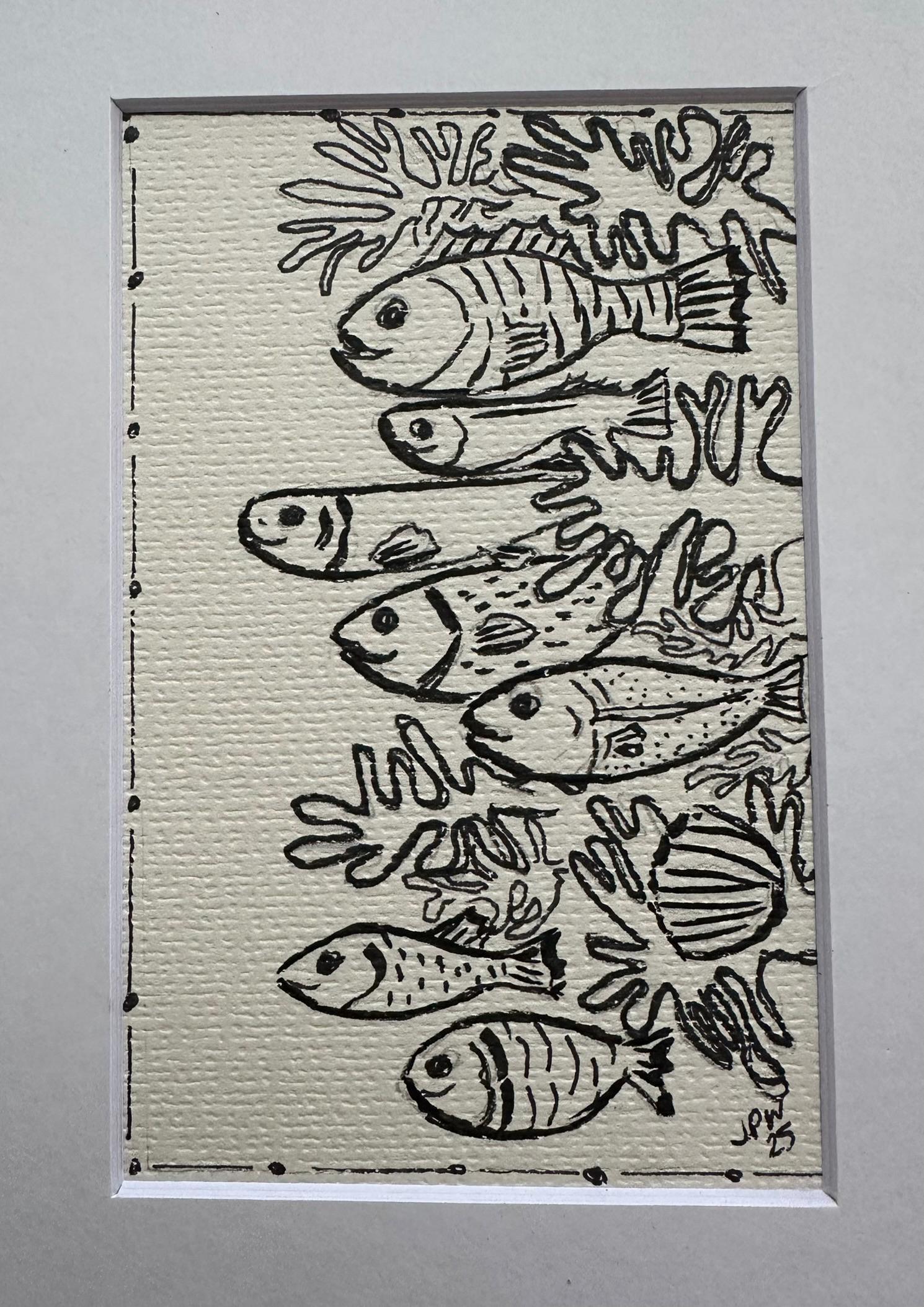BW School of Fish - Original watercolor print