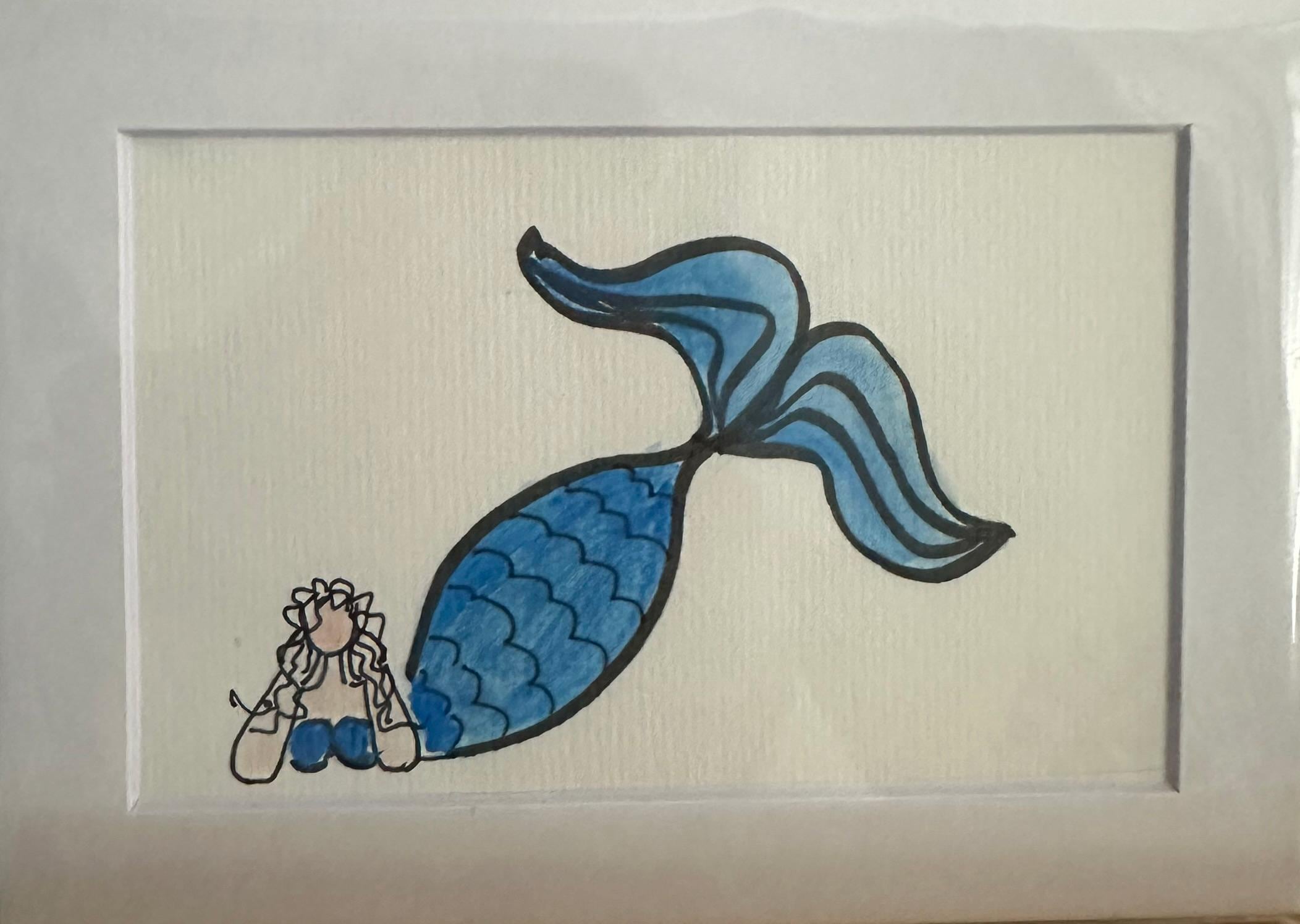 Mermaid in Dark Blue - Original watercolor print
